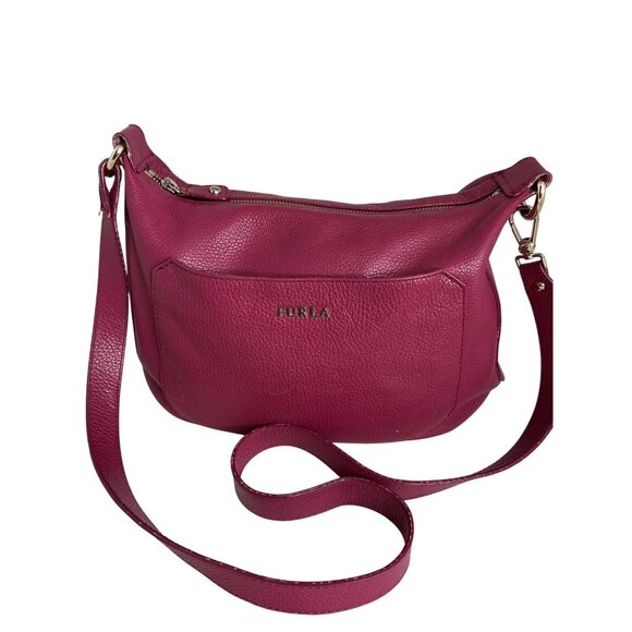 Furla Magenta Pebbled Leather Shoulder Bag