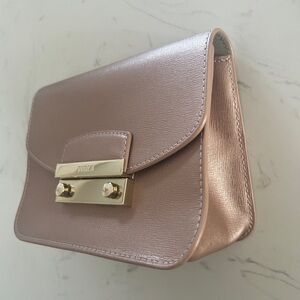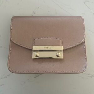Furla Metropolis Mini Crossbody Bag – Rose Pink Leather with Chain Strap- EUC