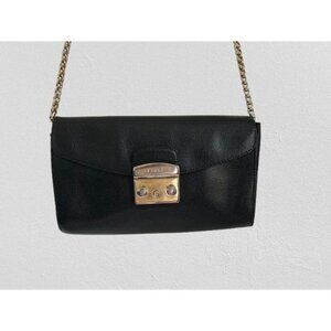 Furla Metropolis Shoulder Bag Black Leather Gold Hardware