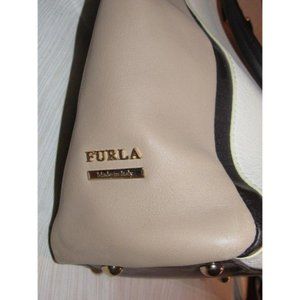 Furla New Black Ivory Satchel Tote Dark Brown And Latte Color Block Leather