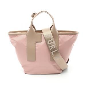 Furla Nylon Tote Leather Pink Bag Beige Piuma Canvas