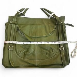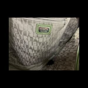 Olive Green Furla tote bag that needs the zipper pull reattached and missing hardware. Please see all pics!