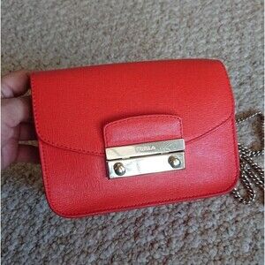 Chic and stylish Furla crossbody bag in vibrant Orange. Perfect for adding a pop of color to any outfit.
