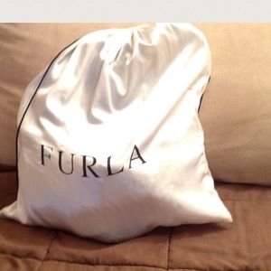 Furla Ostrich Embossed Pompidou Shoulder Bag. Color-brown. Like new condition. Silver tone hardware. Large interior. Side zip pocket, cell phone pocket and smaller open pocket. Three inside pockets total. Duster bag included. 16" wide. 12" high. 5" deep