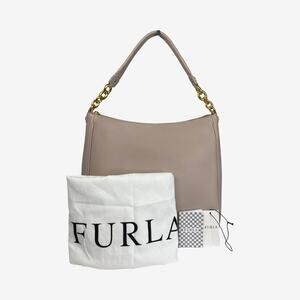 Furla Pebbled Leather Hobo Bag in Sabbia Taupe with Chain Strap and Dust Bag