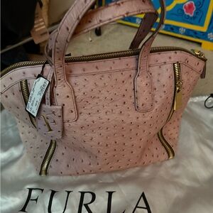 Furla Pink Ostrich-Embossed Women's Bag