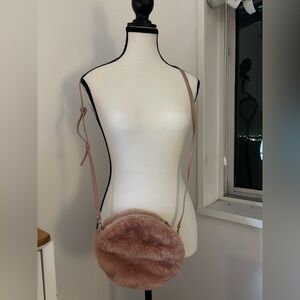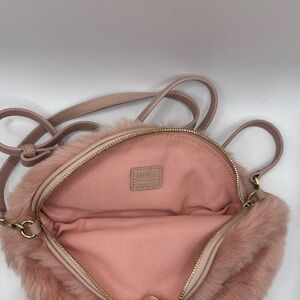 Furla Plush Faux Fur Crossbody Bag with ajustable leather strap - Warm Pink
