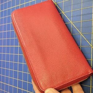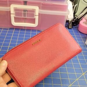 Stylish Furla wallet in vibrant red. Features a zip-around closure.