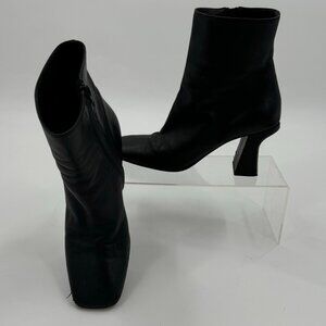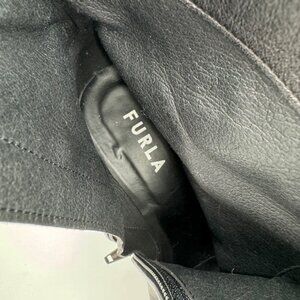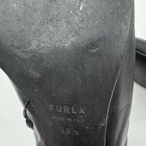 Furla Sirena Black Leather Square-Toe Ankle Boots Size7.5 or 38.5 Made In Italy