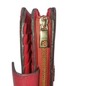 Furla Wallet Womens Red Saffiano Leather Bifold Snap Tab Zip Coin Card Holder