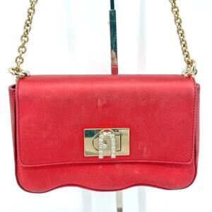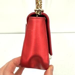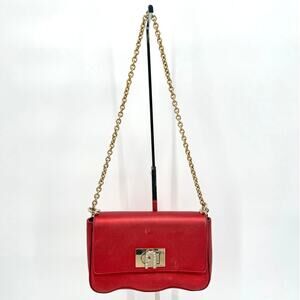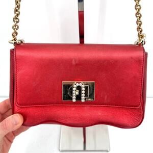 Furla Womens 1927 Crossbody MINI Geained Leather Gold Chain Strap Cherry Red