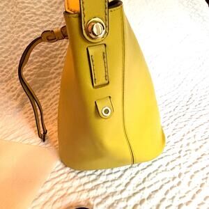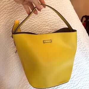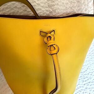 Furla Yellow Two-way Leather Bucket Bag. Comes with crossbody strap as well as an additional pouch. Minor wear. Preloved. See pictures for details.