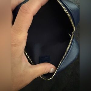 Furla authentic Navy Leather Zip Pouch gold hardware NWT