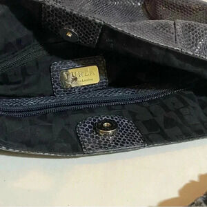 Furla gray snake skin leather hobo handbag