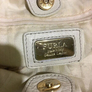 Authentic Furla snake skin / Embossed leather beige tote handbag with gold tone hardware 2 pockets at interior wall 2 side zipper beige Jacquard lining dual rolled shoulder strap exterior minor marks lining have some stains please check all photos hight 13.5” width 21” depth 5” Strap drop 10”