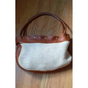 Furla woven off white bag with leather trim handbag designer purse straw raffia