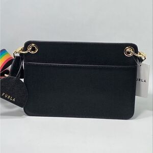 Carry it by the detachable rainbow-hued strap, or remove the strap to sport it as a clutch. The bag's finished with goldtone hardware and a rainbow-hued bag tag.