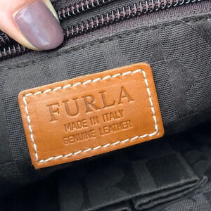 Furla Orange Brown Pebbled Leather Crossbody Bag