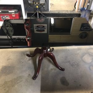 Rectangular back-painted glass top, mounted to a (steelcase brand) base.