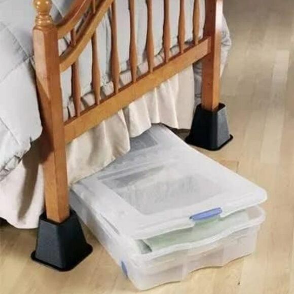-Risers add valuable, easy accessible storage space under a bed and elevate the bed for easier in-and-out