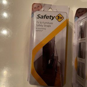 This is a listing for FOUR TV / Television and Furniture safety straps. These straps have 4 different mounting options. According to the packaging, these help prevent tvs and furniture from falling forward to keep a curious baby safe by ensuring that all tv stands, book cases, shelf units, bureaus, armoires, and more are security strapped to the wall.