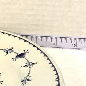 The Furnivals Denmark Blue 12" Vintage Oval Platter originates from England and features a classic blue and white color scheme. Made of ceramic, this glossy finished platter showcases a bicolored design in an oval shape, measuring 12 inches in length. Produced using pottery techniques in Denmark, it bears the Furnivals brand and is part of the Denmark Blue product line, showcasing traditional earthenware production style. This vintage piece is an original item with a printed backstamp, adding an elegant touch to any dining or display setting.
