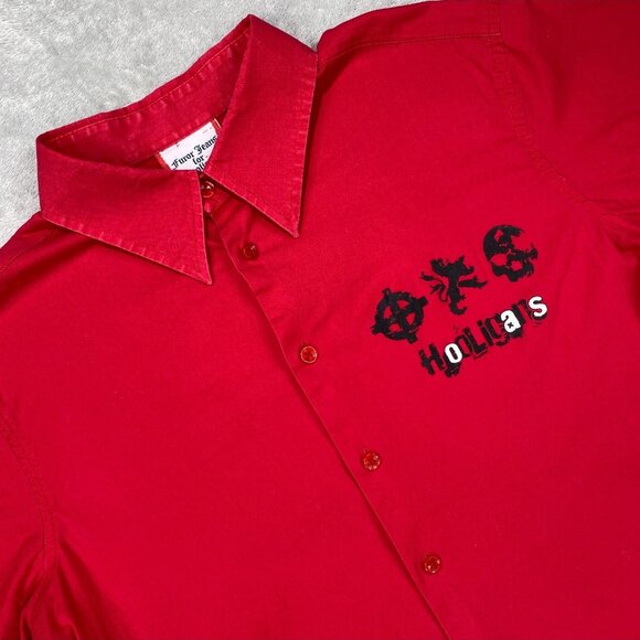 Furor Jeans for Hooligans Shirt Mens Large Red Stretch Short Sleeve Button Up