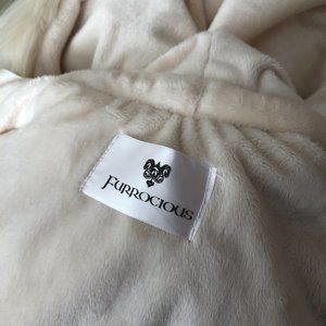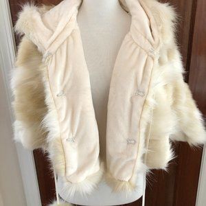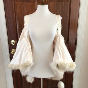 Brand new, never worn faux fur capelet from luxury Playa wear/Burning Man festival fashion Furrocious brand! The capelet is their "Faun" color, featuring ivory and gold tones. One size fits all, but tag is labeled M. Please note: this version does NOT have the horns that are featured in model photo. See other photos for actual item for sale.