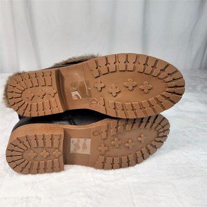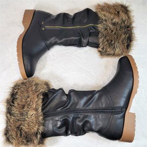 Furry Black Matte Faux Fur Fold Over Cuff Winter Mid Calf Boots