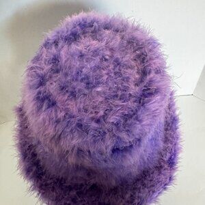 Furry Purple Bucket Hat Fluffy Faux Fur Halloween Costume Feather Fur