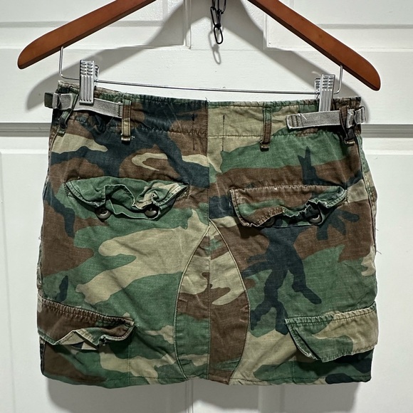 Furst Of A Kind Camouflage Vintage Repurposed Distressed Zip Up Mini Skirt Small