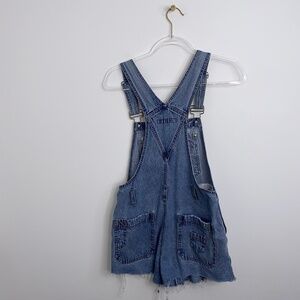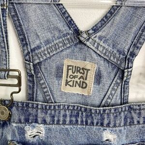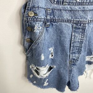 Furst Of A Kind Women Sz 29 Blue Distressed Overalls Shorts Sustainable Upcycled