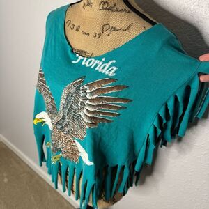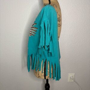 Furst of A Kind Teal Fringe Top Florida Eagle One Size Open Back Festival Boho