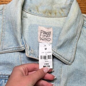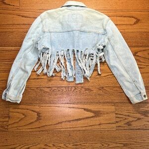 Furst of a Kind Blue Denim Y2K Vintage Cropped Distressed Jean Jacket A32