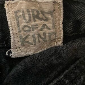 Furst of a Kind reworked these one-of-a-kind black vintage denim shorts from vintage Wranglers denim. These high waisted vintage denim shorts are upcycled in Los Angeles by hand with shredded detailing and are totally unique.