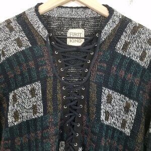 Furst of a Kind Lace Up Granpa Knit Sweater