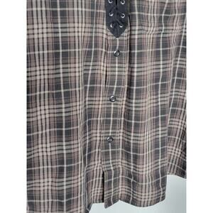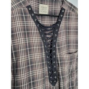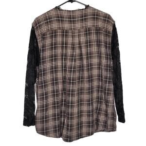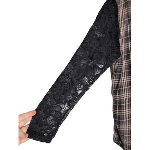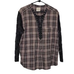 Furst of a Kind Plaid Lace Sleeve Lace-up Top