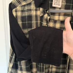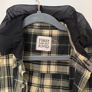 Furst of a Kind Plaid Flannel Shirt with Mesh Sleeves and Hood