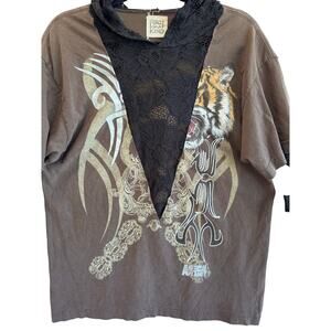 Furst of a Kind Tiger Graphic Tee Lace Inset Upcycled Animal Planet Shirt Sz M/L