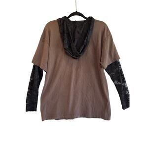 One-of-a-kind Furst of a Kind upcycled graphic tee featuring a roaring tiger Animal Planet print with metallic tribal accents. Designed with black floral lace inset at the neckline and lace long sleeves for a bold layered look. Relaxed fit, soft fabric, and statement style perfect for streetwear or Y2K-inspired outfits.