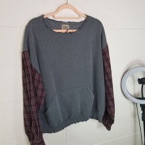 Furst of a Kind upcycled redone plaid flannel sweatshirt distressed