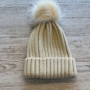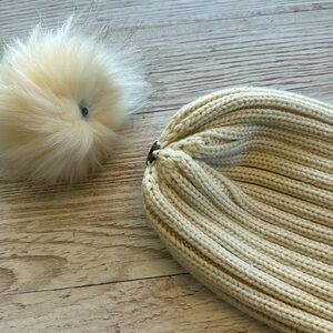 Furtalk Hat Women’s OS Beige Cream Knit Beanie with Detachable Pom Pom Good used condition colors may vary in different light