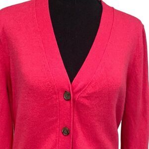 Fuschia pink button down J. Crew V neck cardigan. Wool blend. Very light and soft. Gently worn with some pilling but otherwise in great condition. Comes from smoke free home