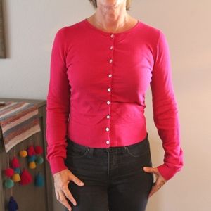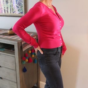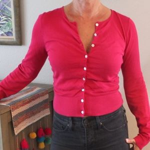 Flattering, bright pink short sweater made of 100% cotton from The Limited.