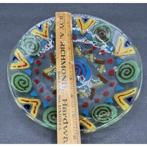 Fused Art Glass Abstract Vibrant Design Plate Round 7.5" Diameter