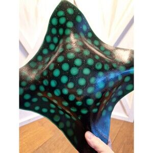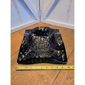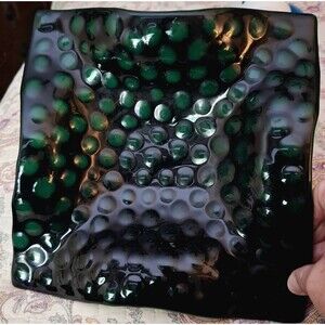 Fused Art Glass Plate/Bowl Ruffled Edges Deep Dark Green Dimpled Dots 10"X 10"