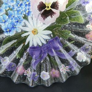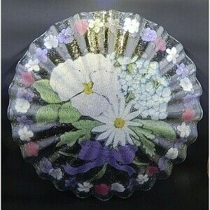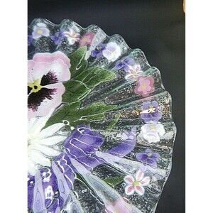 Fused Glass Floral Bouquet Plate Dish Pansy Daisy Ruffled Edge 10.5 In Signed