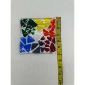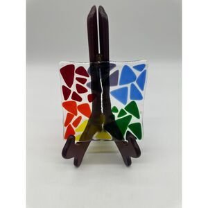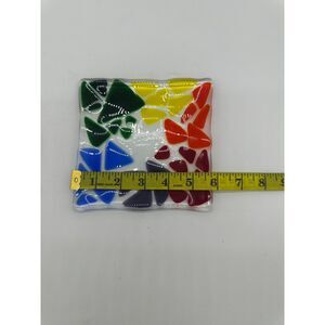 Fused Glass Trinket Dish 6x6 Multicolored Triangles Catchall Square Dish Plate