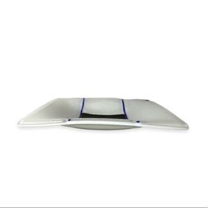 Fused Glass Handmade Blue Gray White Square Plate Trinket 6” Murano Style