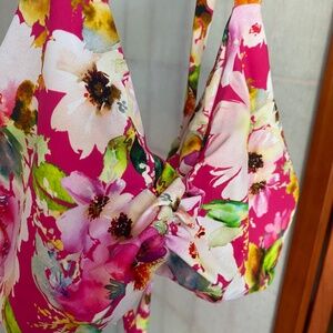 This print is beautiful lots of pinks like a abstract tropical watercolor
